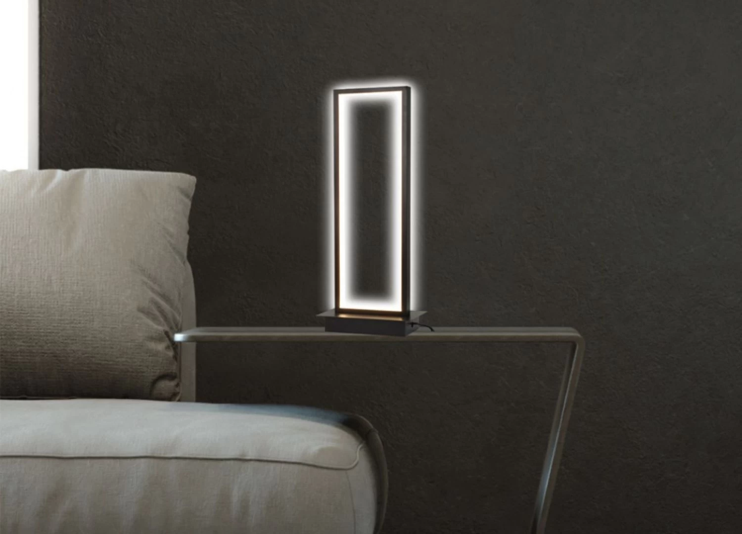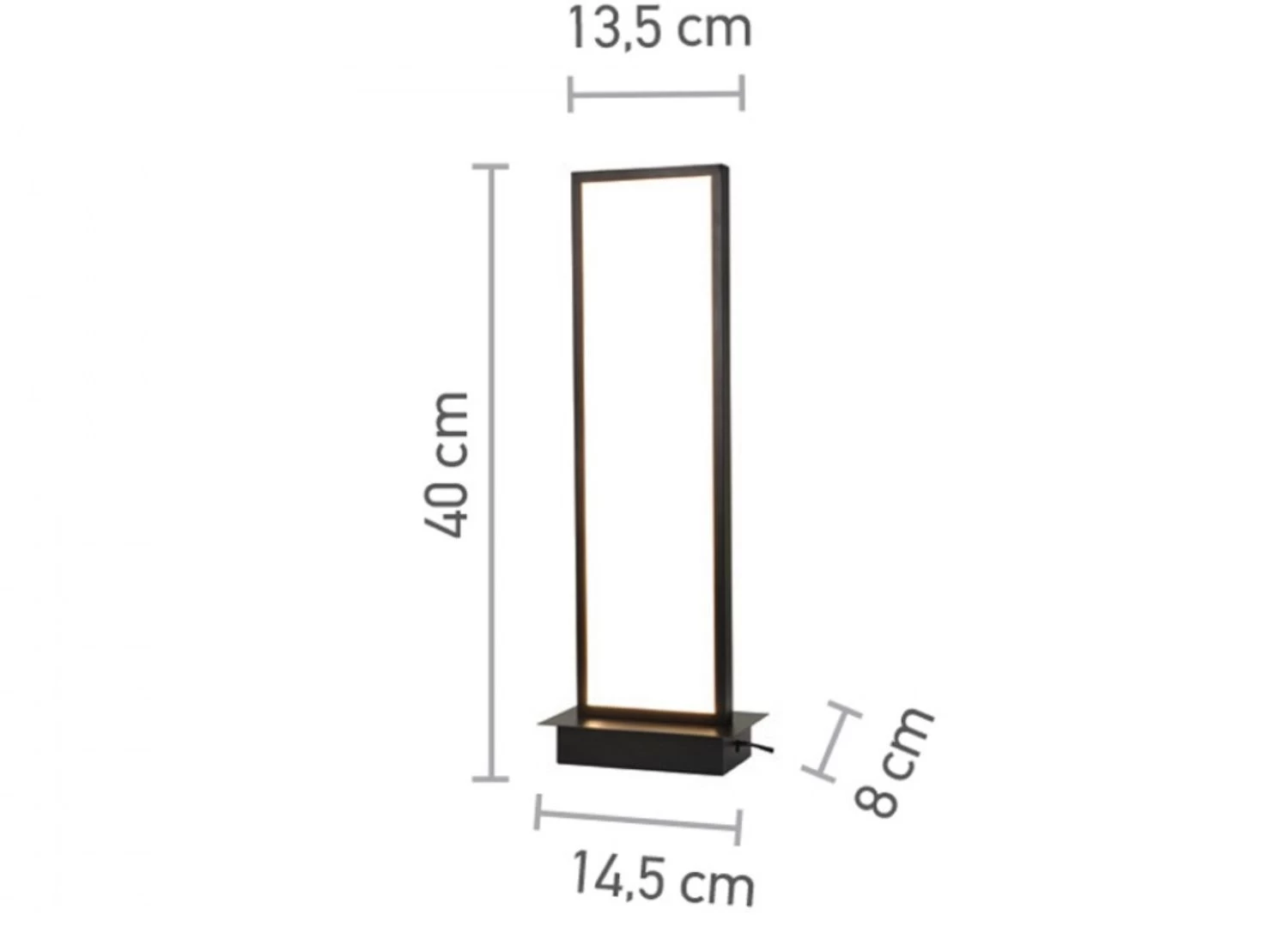 Πρόκειται για ένα μαύρο επιτραπέζιο φωτιστικό κατασκευασμένο από αλουμίνιο. Στο εσωτερικό του υπάρχει λευκή ακρυλική επιφάνεια που καλύπτει τον led φωτισμό θερμής απόχρωσης. Η γεωμετρική του σχεδίαση ταιριάζει σε όλους τους μοντέρνους χώρους.