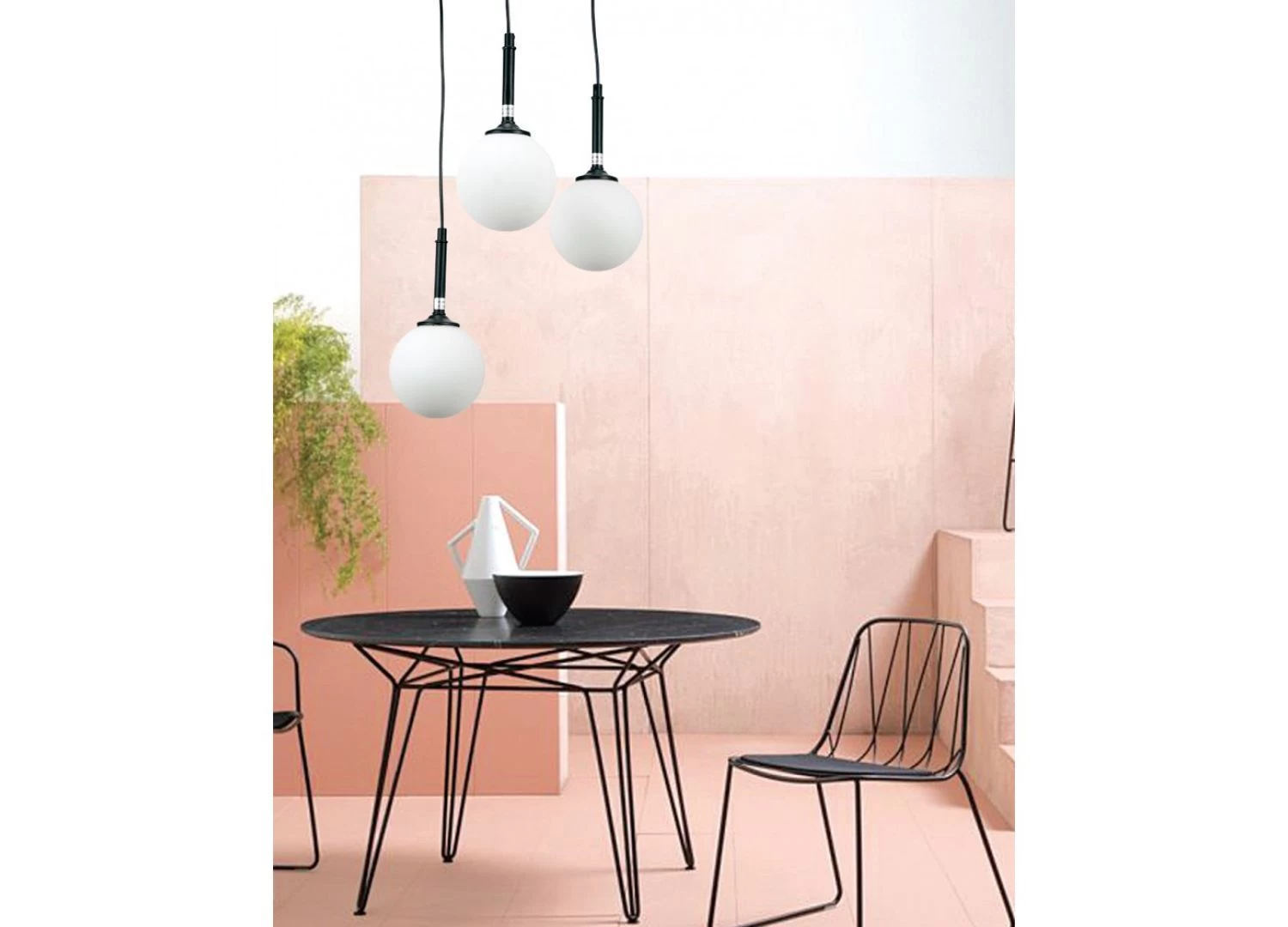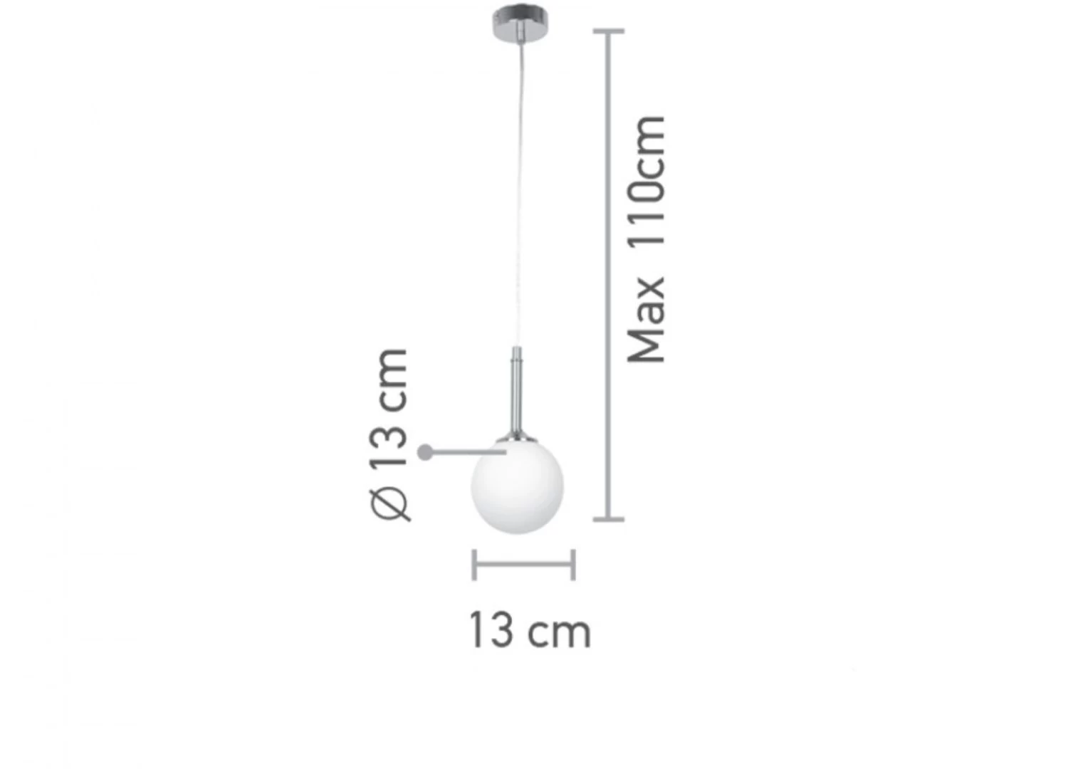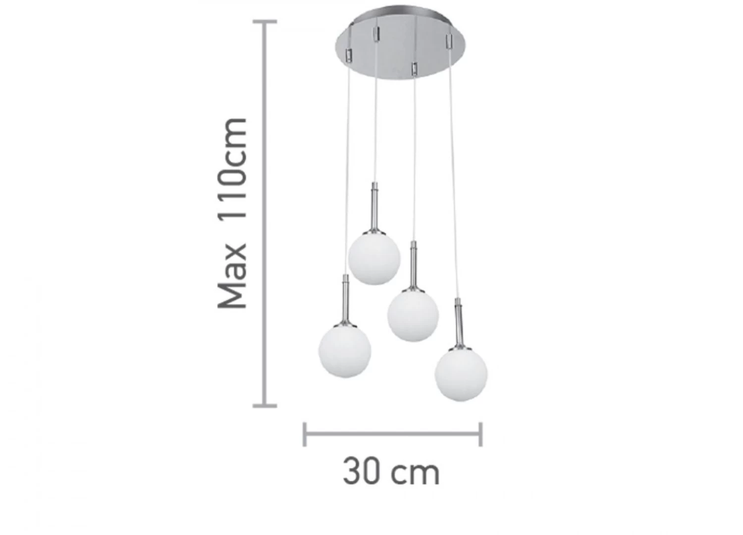 Πρόκειται για ένα χρυσαφί μεταλλικό φωτιστικό με λευκή οπαλίνα και τρεις λαμπτήρες. Το ύψος μπορεί να ρυθμιστεί ώστε να προσαρμοστεί στον μοντέρνο χώρο τοποθέτησής του.