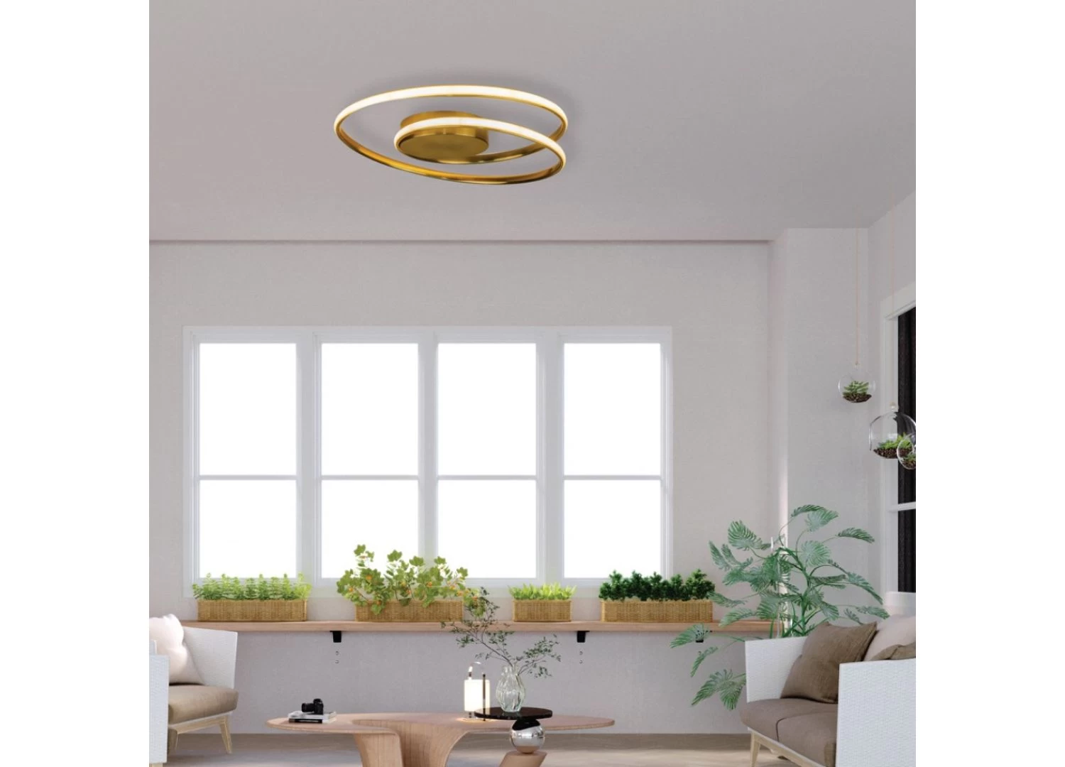 Πρόκειται για ένα φωτιστικό οροφής με κυκλική σχεδίαση κατασκευασμένο από αλουμίνιο. Η λευκή ακρυλική του επιφάνεια καλύπτει τον led φωτισμό θερμής απόχρωσης.