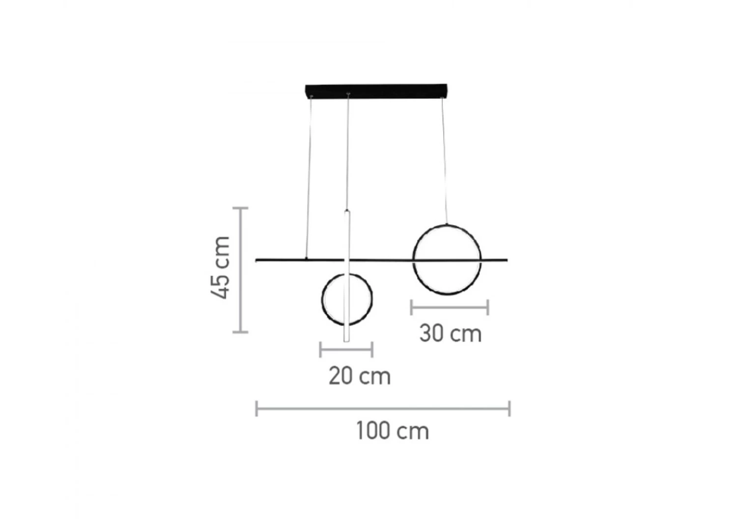Πρόκειται για ένα μαύρο μεταλλικό κρεμαστό φωτιστικό μίνιμαλ σχεδίασης. Η λευκή ακρυλική του επιφάνεια καλύπτει τον LED φωτισμό θερμής απόδοσης.