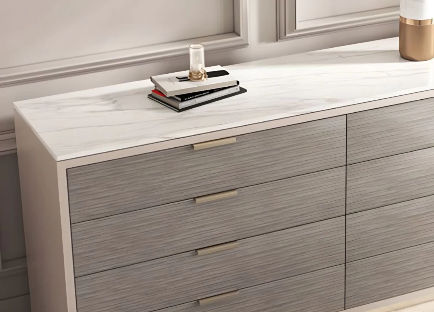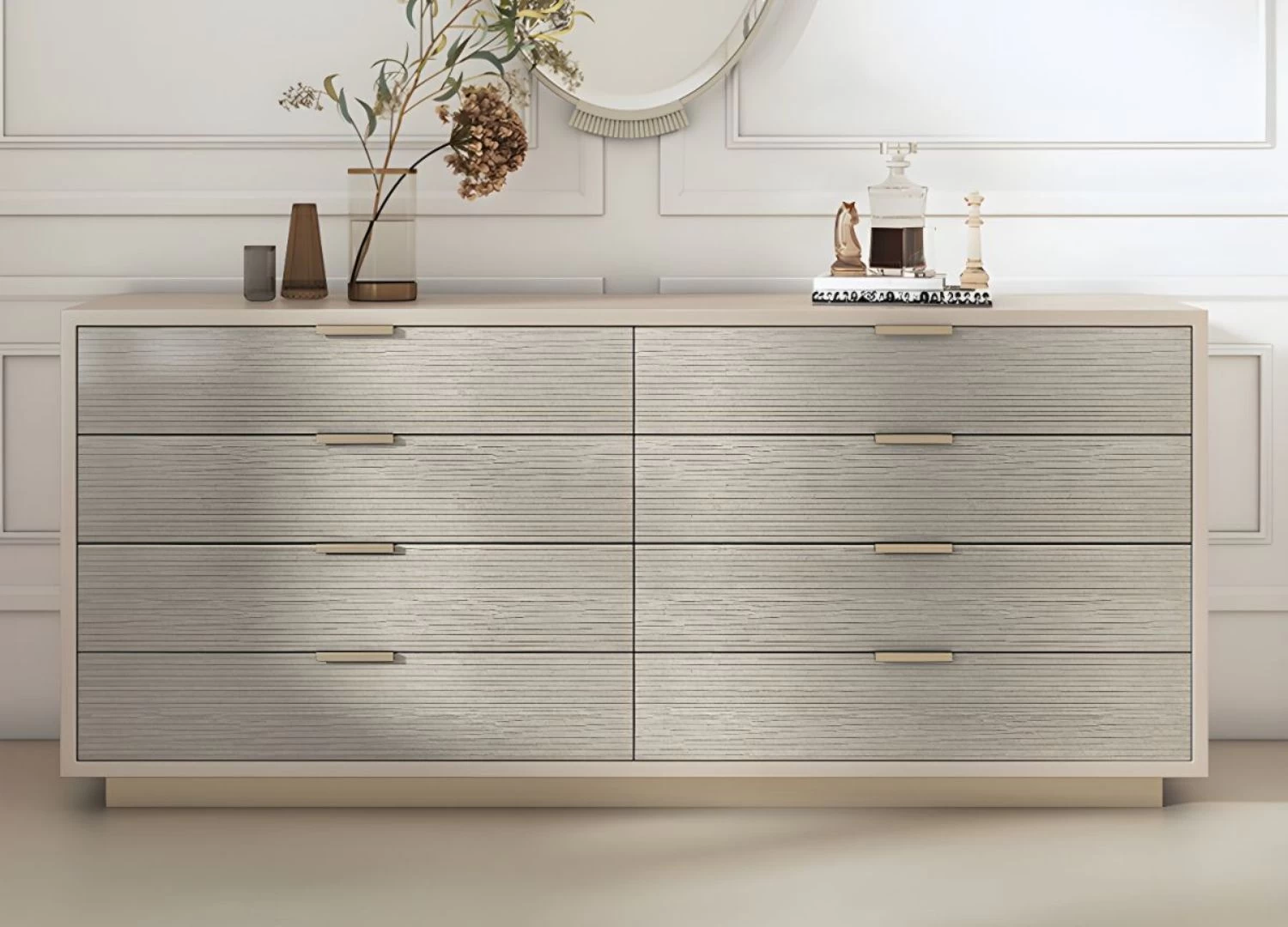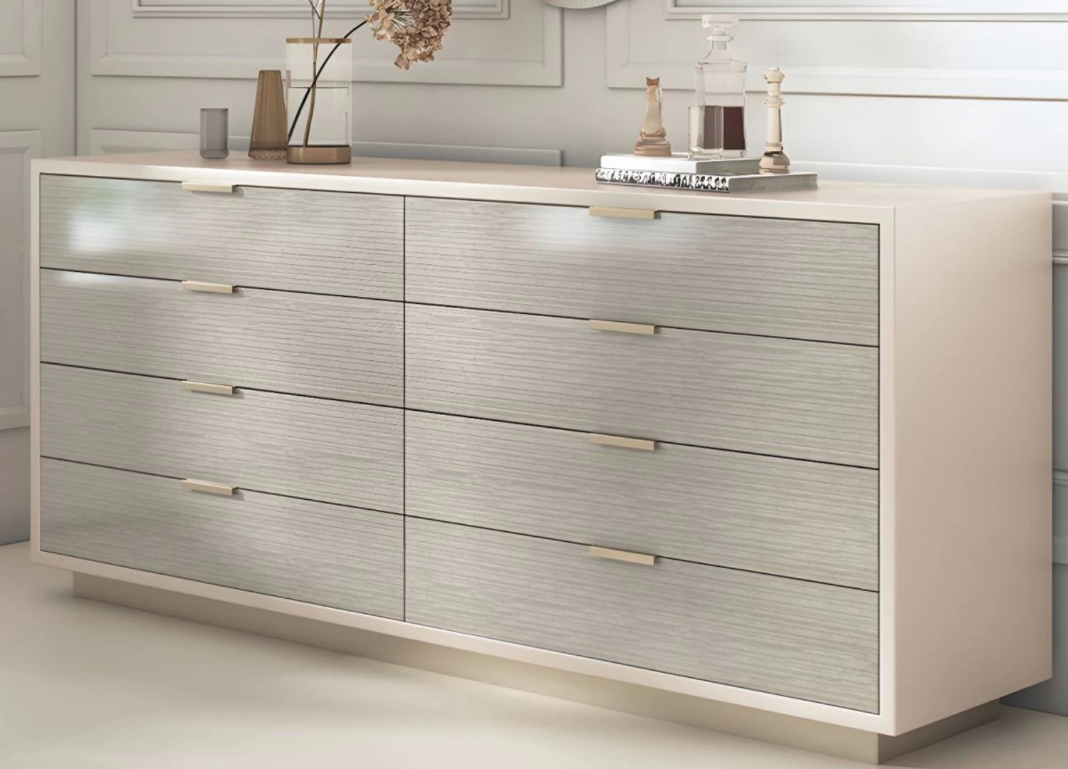 Η συρταριέρα Lara συνδυάζει τη μοντέρνα αισθητική με την πρακτικότητα, προσφέροντας έναν εκλεπτυσμένο αποθηκευτικό χώρο για το υπνοδωμάτιο ή το σαλόνι σας. Οι στρογγυλεμένες λεπτομέρειες και η minimal γραμμή καθιστούν τη Lara ιδανική επιλογή για κάθε μοντέρνο σπίτι.
