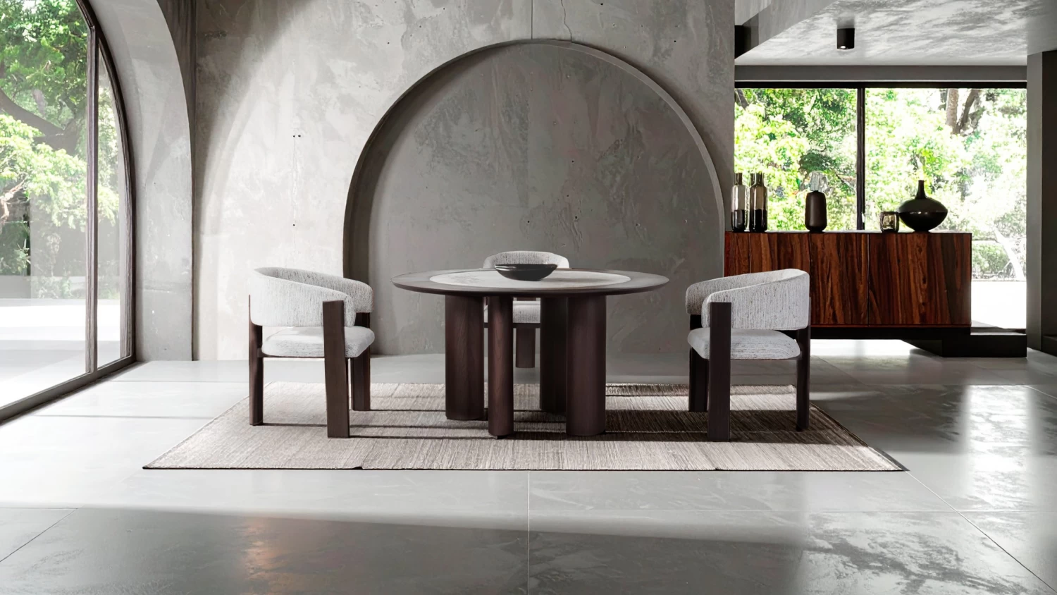 Circular Socializing: Το κυκλικό σχήμα προάγει το inclusive dining. Χωρίς γωνίες και περιορισμούς, η Rotonda διευκολύνει την επικοινωνία, δημιουργώντας μια seamless ροή γύρω από το τραπέζι, ιδανική για fine dining βραδιές με φίλους.